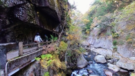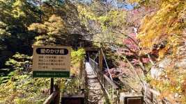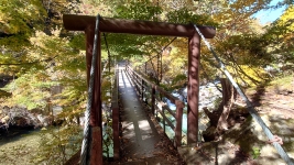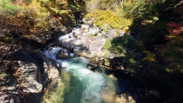 | 「愛のかけ橋」愛が結ばれるというスポット。橋からは川の中央から渓谷を眺められる。貴重な低い位置からの撮影スポット。 | ||