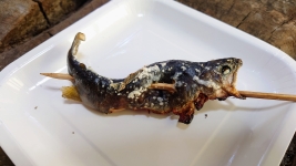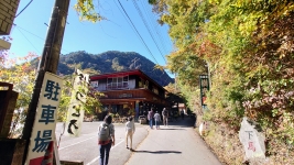 | 県営駐車場を過ぎると観光地の賑わいが。岩魚の塩焼きで腹ごなし。いよいよ昇仙峡ハイライト「覚円峰(かくえんぽう)」へ。 | ||
