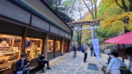 | この先は観光地。お店が軒を連ねる。水晶で有名な昇仙峡。名所ならではの買い物ができる。新そばの時期。御岳そばにも行列。 | ||