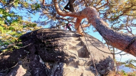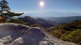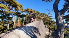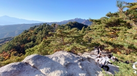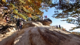 | 歩いて5分で展望台がある。こちらは岩峰で山らしい山頂。柵などはないので観光で来た人達は怖気づきながらも楽しんでいた。 | ||