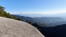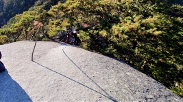 | 鎖場の先は断崖絶壁。今日は風がないのでゆったり眺望を楽しむ。強風の時は立っていられない。間違いなく絶叫ポイントだろう。 | ||