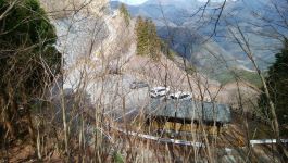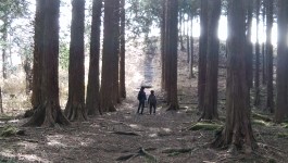 | 山梨県の南部町内船(うつぶな)駅の裏手から佐野峠を目指す。ナビにある船山温泉を通過するが,すでに廃業しているのか,温泉自体はない。標識は「思親山(森林文化の森)方面」という案内が所々にある。 | 標高845mの佐野峠まで一気に上がる。峠までは全舗装道路なので四駆以外でも大丈夫。しかし,すれ違いができる幅はないので,一定間隔にある待避所をうまく使いたい。デリカでぎりぎりのポイントあり。慣れていないと大変だろう。 | 佐野峠は十分な広さがあり,立派な駐車場がある。トイレも完備。娘はきれいな外観なのに,ぼっとん便所だったことに少々怖じ気づいていた。山の中なので当たり前である。3月までは水道がストップしている。 |